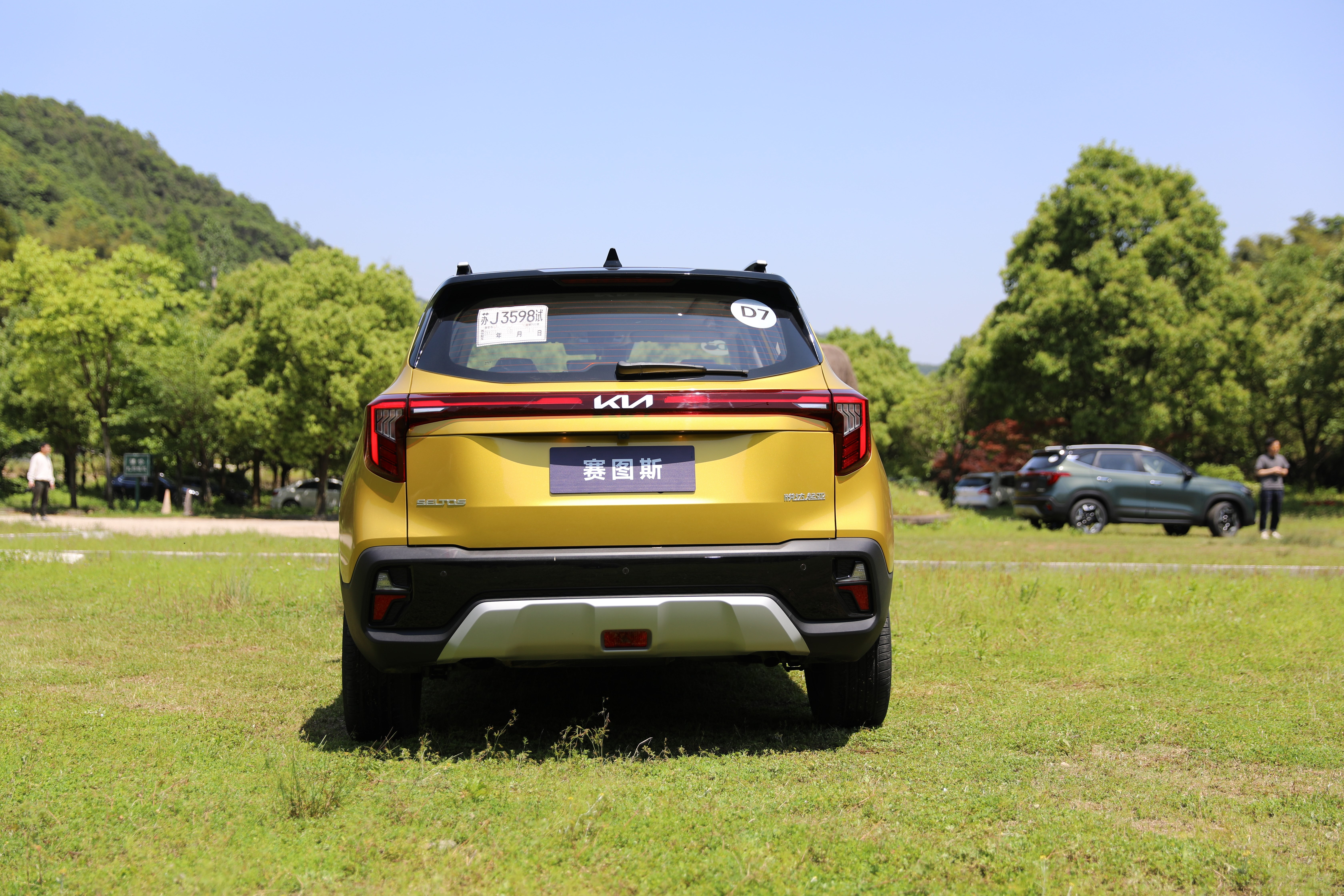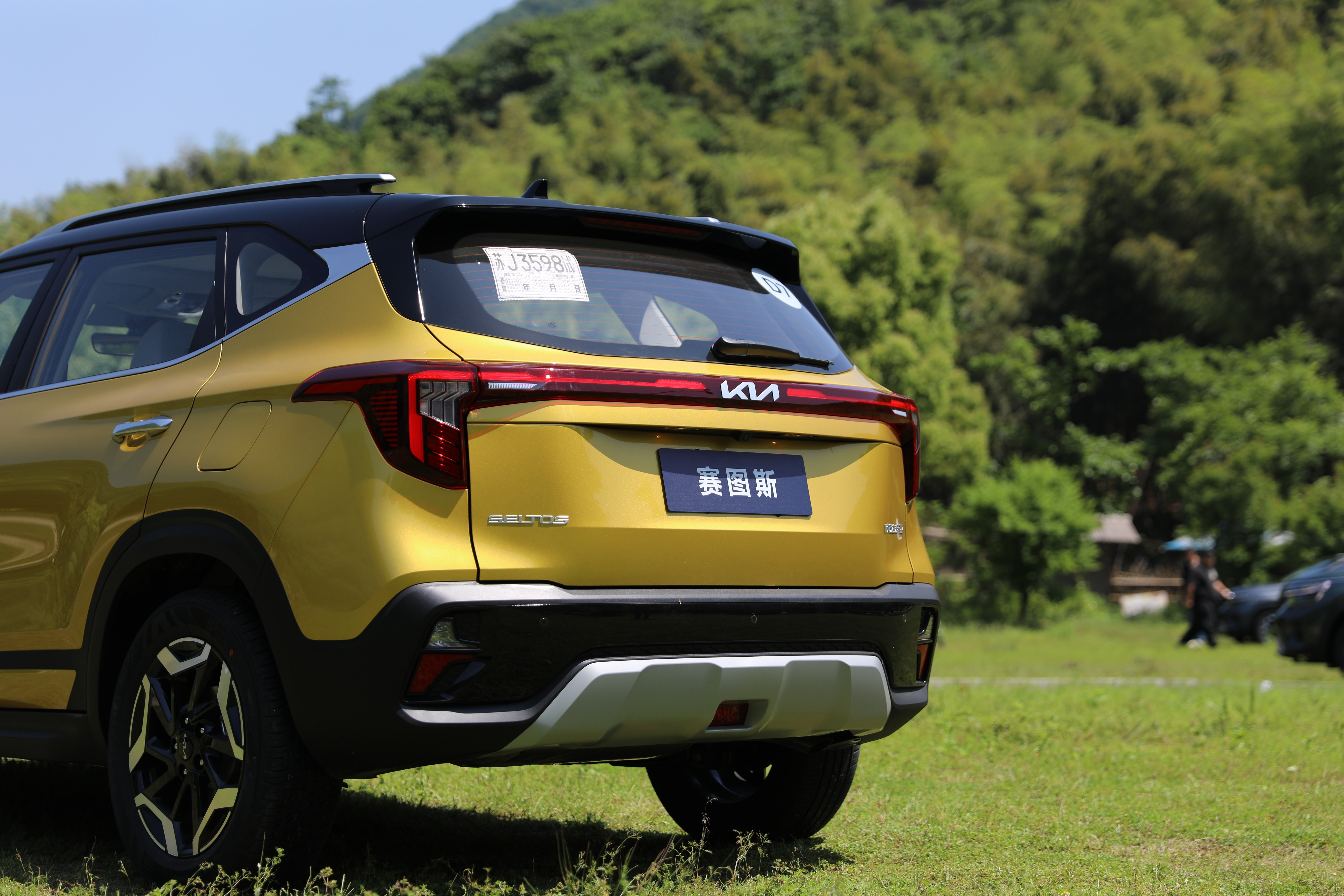 車側采用雙拼色車身,并且賽圖斯提供非常豐富的顏色搭配可選,我們拿到的試駕車選用“星耀黃”配色,主打時尚、年輕,而個人更偏愛“橄欖綠”配色,總之,賽圖斯提供非常靚麗顏色可選,并對A、B、C柱均進行熏黑處理,相信年輕人們能夠輕易找到適合自己的搭配。