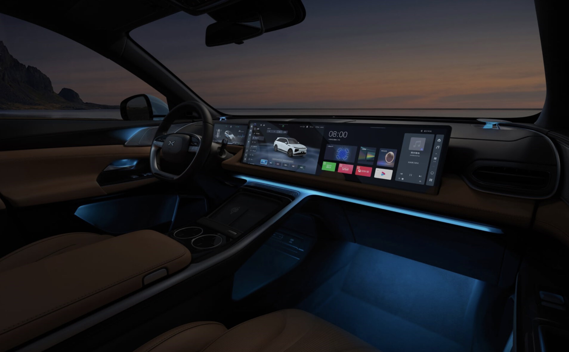 內(nèi)飾方面,小鵬G9的內(nèi)飾采用環(huán)抱式座艙設(shè)計,10.25英寸全液晶儀表搭配兩塊14.96英寸大屏,讓中控區(qū)域?qū)哟胃蟹置鳎M顯科技感。另外,座艙內(nèi)的用料也值得一提,座艙內(nèi)95%面積都使用軟包覆蓋,且大面積真皮及PU革材質(zhì)均獲得OEKO-TEX認證,達到嬰兒接觸級的健康環(huán)保。