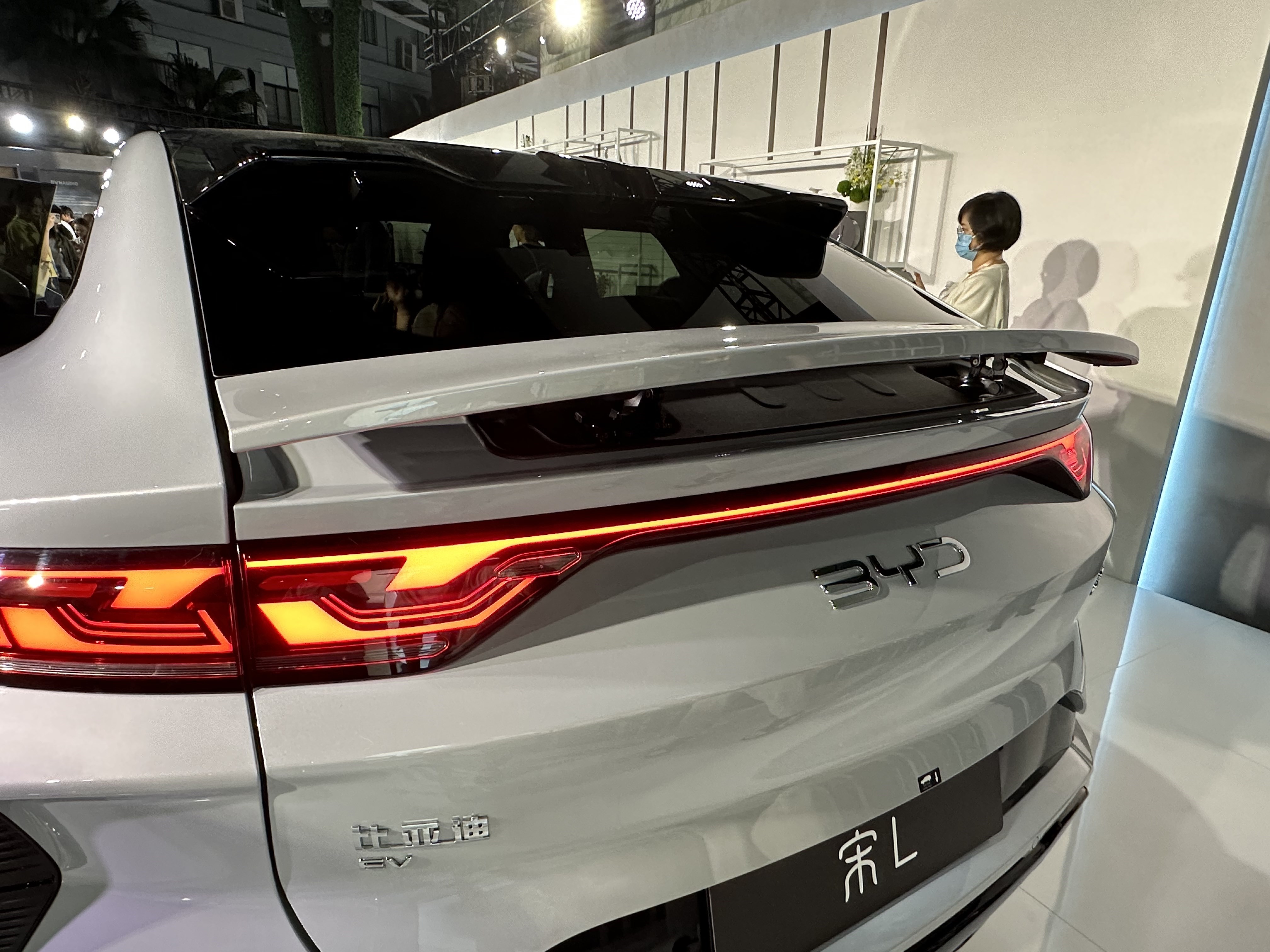從側面看去,雖然輛車均溜背式的設計,但筆者認為宋L的設計更為協(xié)調一些,也更具一絲優(yōu)雅的腔調,其車頂流線自B柱之后緩緩滑落,在兼顧時尚氣息的同時,進一步降低風阻系數。另外,新車還全系配備了無框車門、低風阻輪圈等設計。