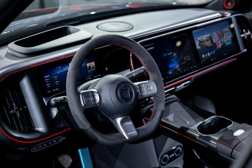 在內(nèi)飾方面,全新#5 BRABUS超能版采用帶有發(fā)光BRABUS字樣的Alcantara材質(zhì)方向盤,握感舒適,且運動感十足。AMG御用的Dinamica材質(zhì)座椅不僅帶來頂級的舒適感,更營造出極為運動的氛圍。