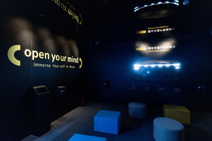 smart攜手世界公認(rèn)領(lǐng)先的專業(yè)音頻廠商森海塞爾共建一座移動藝術(shù)影院,配合車規(guī)級投影儀,將展臺的一隅變成了沉浸感十足的影音視聽殿堂。用戶可以在這里感受森海塞爾典范音響系統(tǒng)的高端魅力,享受天籟之音。