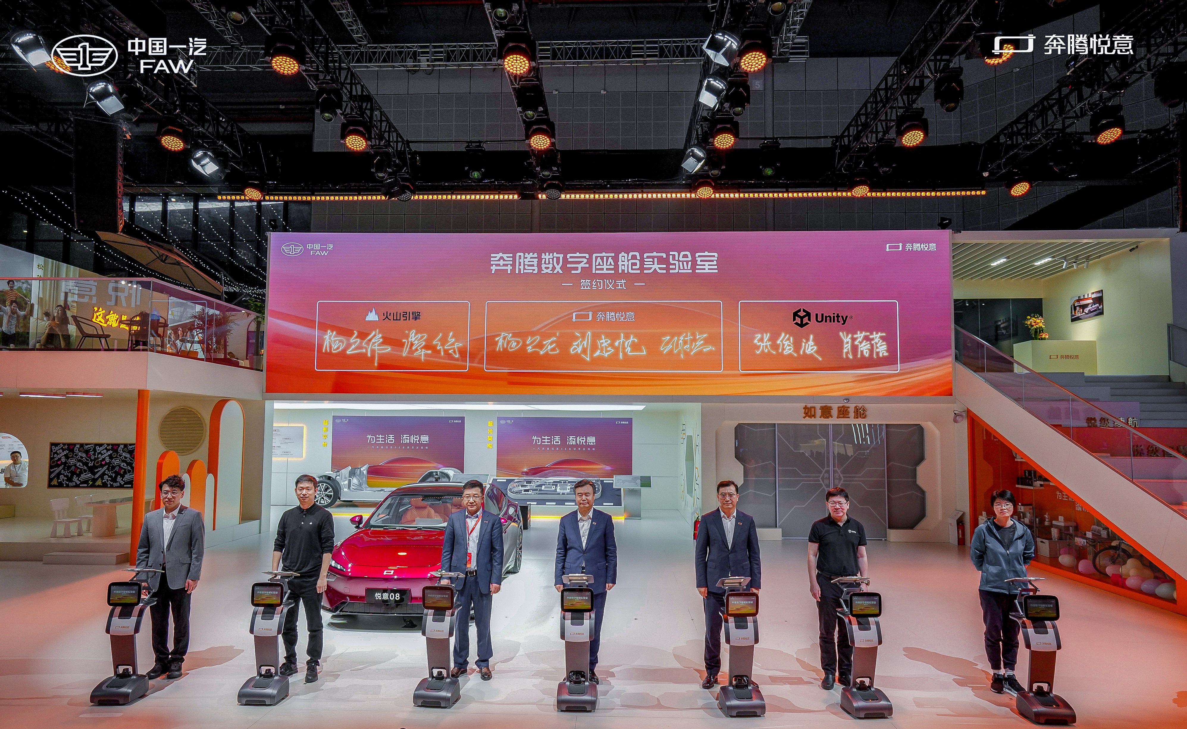 傳承一汽70余年造車底蘊(yùn),基于一汽奔騰自主創(chuàng)新研發(fā)實(shí)力,以及生態(tài)鏈合作伙伴協(xié)同共創(chuàng)的聚合效應(yīng),奔騰悅意不斷豐富技術(shù)儲備、擴(kuò)充未來出行生態(tài)。車展發(fā)布會現(xiàn)場,一汽奔騰還正式與火山引擎和Unity簽約,聯(lián)合成立數(shù)字座艙實(shí)驗(yàn)室,為進(jìn)一步提升未來出行體驗(yàn)做足準(zhǔn)備。