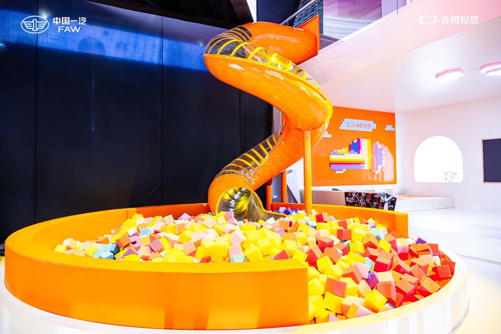 本次上海車展,就是展示悅意序列品牌調(diào)性的絕佳舞臺。步入一汽奔騰“悅意新天地”,新車、新技術(shù)、新形象躍然眼前,以晨曦咖和親和橙為主色調(diào)的街區(qū),帶來滿滿松弛感??Х葟d飄滿香氣,音樂廳流淌樂章,坐著聽歌、拍照都十分愜意。游樂場,360°螺旋云軌滑梯讓帶娃逛展的寶媽寶爸終于不用輪流看娃,環(huán)繞秋千,悠蕩間劃出自由弧線,更成為觀展者排隊(duì)打卡的潮趣天地。在這里,悅意的含義有了最直觀的表達(dá)。奔騰悅意讓逛車展像逛街一樣輕松愜意。