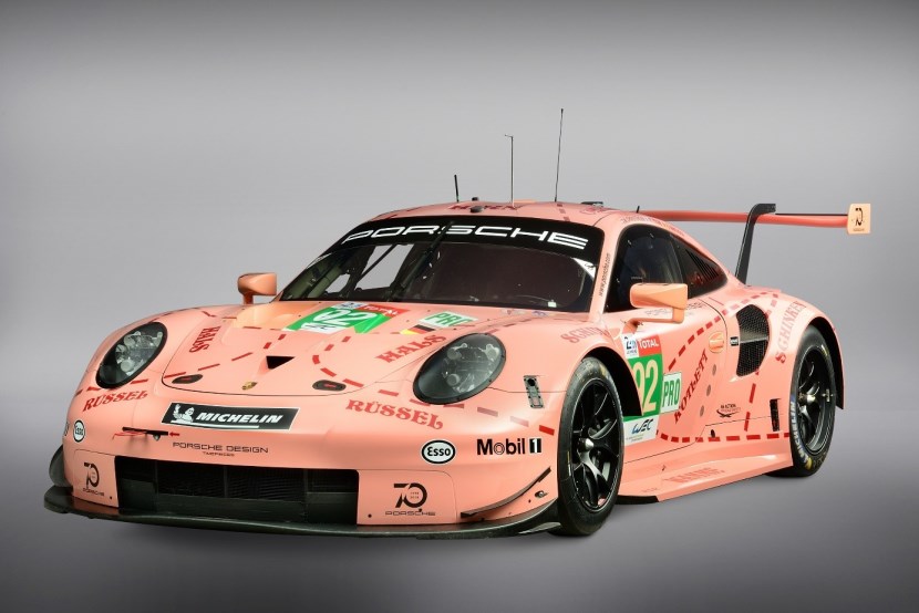 毫無疑問,這是一款現(xiàn)代化的賽車——911 RSR(991),其出征了 2018 年的勒芒 24 小時耐力賽 GTE-Pro 組別的角逐。最終這臺身披“粉豬”涂裝的 92 號 911 RSR 賽車在與法拉利、寶馬、福特、克爾維特、阿斯頓·馬丁五大制造商車隊的同場競技中斬獲組別冠軍。更值得一提的是,雖然未出現(xiàn)在展臺,但身披樂富門涂裝的 91 號911 RSR賽車斬獲亞軍,包攬組別前兩名。這款“粉豬”涂裝的 92 號 911 RSR 賽車不由令人想起保時捷 917/20 賽車征戰(zhàn) 1971 年勒芒比賽時的情景。車身圖案為粉色豬肉切割圖的樣式,這一由保時捷設計師 Anatole Lapine 提出的設計理念在當年的法國薩爾特省引起轟動。時至今日,被稱做“松露獵人”的保時捷 917/20 賽車仍是最著名的保時捷賽車之一。
