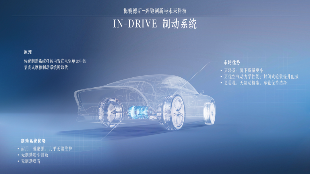 在駕控方面,梅賽德斯帶來了有別于傳統(tǒng)機(jī)械制動的In-drive制動系統(tǒng),可以通過電驅(qū)系統(tǒng)實現(xiàn)制動,令能量回收和制動體感更舒適,也能幾乎無磨損、終身免維護(hù);此外,即將在2026年量產(chǎn)的線控轉(zhuǎn)向技術(shù),也將帶來更為舒適、靈活與精準(zhǔn)的轉(zhuǎn)向。