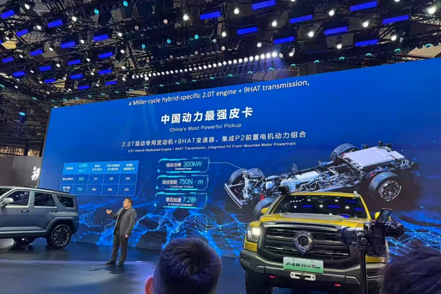 在發(fā)布會(huì)現(xiàn)場(chǎng),官方稱長(zhǎng)城山海炮Hi4-T為“中國(guó)動(dòng)力最強(qiáng)皮卡”,搭載2.0T發(fā)動(dòng)機(jī)+9HAT變速器+P2前置電機(jī)組成的插混動(dòng)力,綜合功率300千瓦,綜合扭矩750牛·米,百公里加速7.2秒,而這輛車的到來,也標(biāo)志著長(zhǎng)城皮卡正式邁入新能源領(lǐng)域。