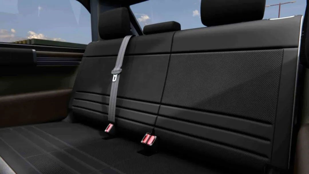 最引人注目是可拆裝的 SUV 轉(zhuǎn)型套件,可以將其從雙座皮卡改裝為五座SUV,可安裝官方配件,如防撞籠、安全氣囊和后排座椅,或3D打印配件。