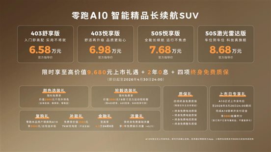 早上 7 點半的北三環(huán)高架又堵成了停車場,隔壁網(wǎng)約車司機(jī)啃著包子掃了一眼我開的試駕車,探出頭喊:"兄弟這新出的零跑 A10 吧?我正打算把我那臺老油車換了,聽說不到 9 萬就能帶激光雷達(dá)?" 我笑著揮了揮手 —— 是啊,現(xiàn)在的新能源市場卷到什么程度?6 萬起步,最高不到9萬的小車,能把以前 20 萬級才有的配置給你塞得滿滿當(dāng)當(dāng),零跑 A10 這臺剛上市的小型純電 SUV,顯然就是來掀桌子的。